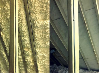 Spray foam insulation can cause serious problems for the roof structure if it’s not installed carefully. One major issue is that it blocks proper ventilation. Roofs need proper airflow to let moisture escape, but spray foam often seals off these pathways. When moisture gets trapped, it can soak into the wooden roof timbers, causing them to rot over time. This weakens the wood, which can eventually make the roof unstable and lead to expensive repairs. The worst part is that this damage often happens out of sight, so homeowners may not notice it until it’s far too late. When left untreated, these issues can lead to extremely costly repairs, and far too often having to have the roof replaced entirely.